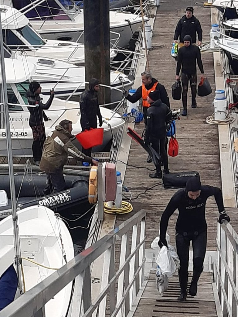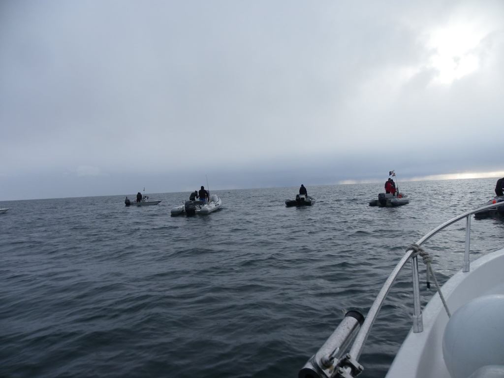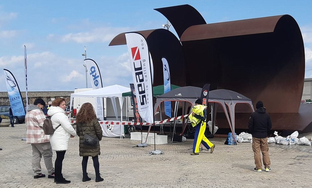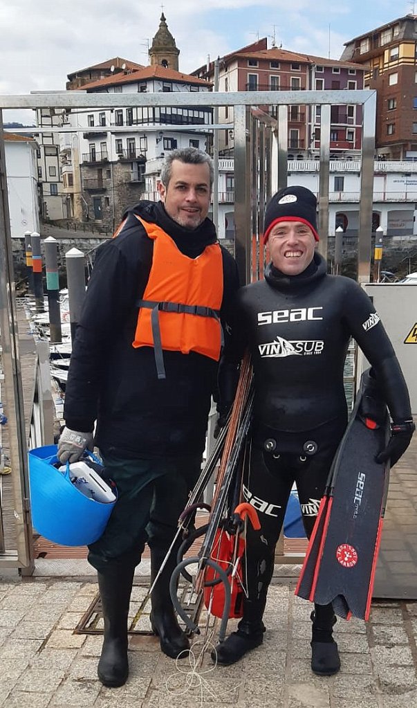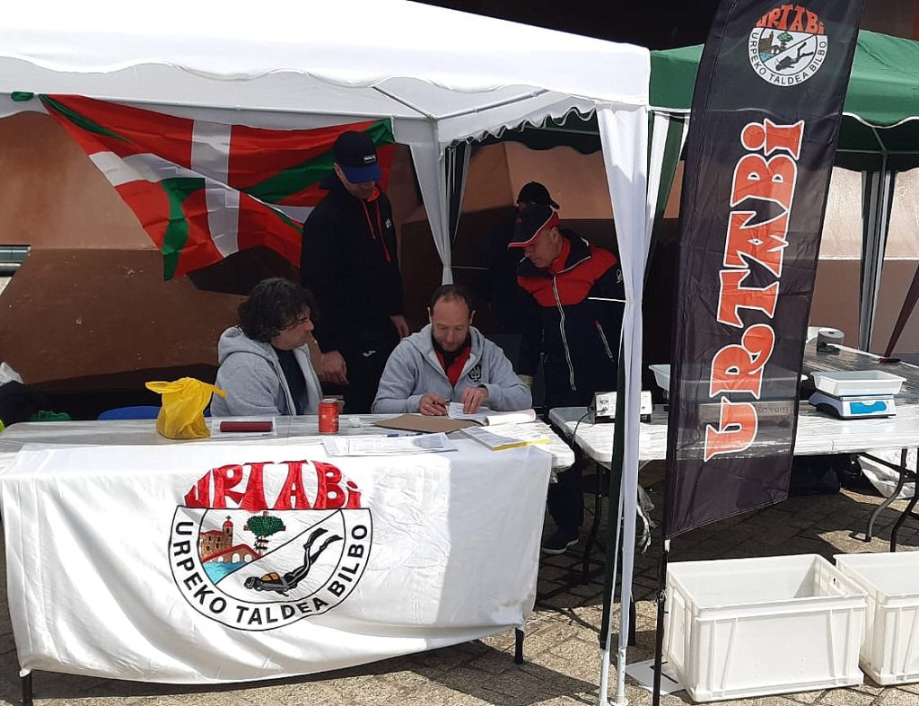 El domingo 3 de abril organizamos en Bermeo la primera manga del campeonato de Vizcaya de pesca submarina, la prueba empezó a la 9:20 y terminó a las 13:20, un día duro de lluvia y mucho frío, sobre todo para la gente que permaneció en los barcos, boteros y organización.